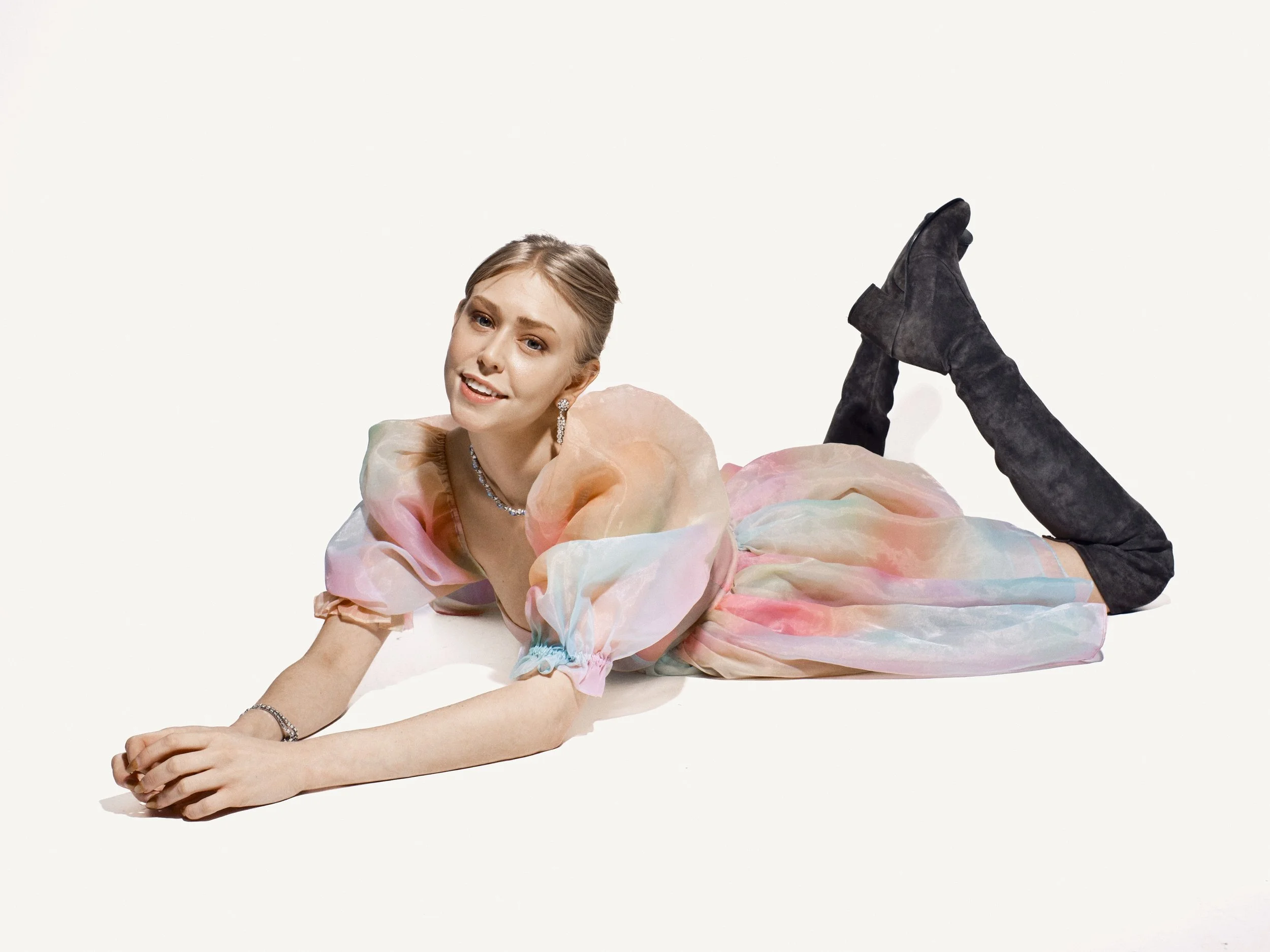 From a process standpoint, the shoot was structured to balance control with responsiveness. We worked with a clear plan—setups designed to produce distinct moods—but remained flexible enough to follow what was emerging in front of the camera. Some of the strongest frames came not from pushing for expression, but from letting the space settle and allowing Emeline to move through subtle shifts in attention and posture.